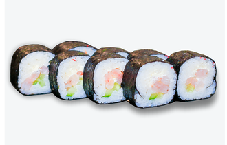 Рис, норі, лосось, тамаго, крем-сир, огірок, ікра масаго, кунжут
