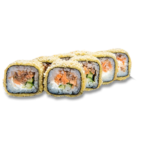 рис, норі, лосось, огірок, крем-сир, темпура, панко