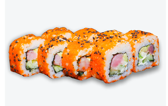 Рис, норі, тунець, крем-сир, огірок, авокадо, ікра масаго, кунжут