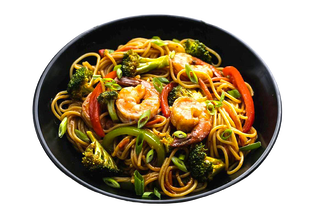 лапша, овочі, креветка, соус теріякі, лимон, часник, імбир, кунжут