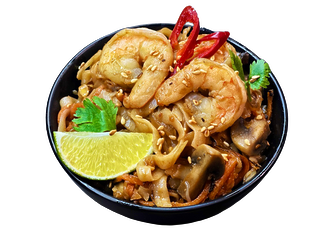 лапша, овочі, часник, креветка тигрова, соус теріякі, лимон, імбир, кунжут