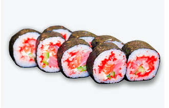 Рис, норі, лосось, окунь, тунець, огірок, ікра масаго, соус спайс