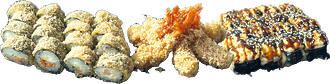 Гарячий з лососем, Гарячий з креветкою, Запечений з тунцем, Запечений з лососем, Креветка в темпурі