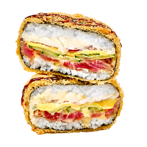 рис, норі, крем-сир, тунець, огірок, ікра масаго, темпура, панко, соус унагі, соус спайс, кунжут