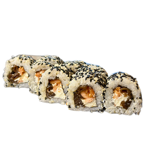 рис, норі, крем-сир, гарбуз маринований, лосось, кунжут, соус унагі
