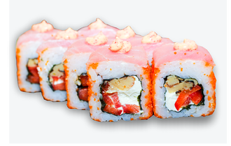 рис, маменорі, куряче філе, крем-сир, ананас, огірок, соус унагі, кунжут чорний